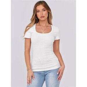 ANRABESS Ribbed Scoop Neck Short Sleeve Slim Fit Tee Womens Summer Top