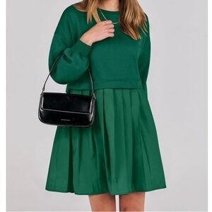 ANRABESS Sweatshirts Oversized Long Sleeve Loose Pleated Pullover Mini Dress