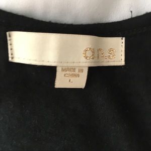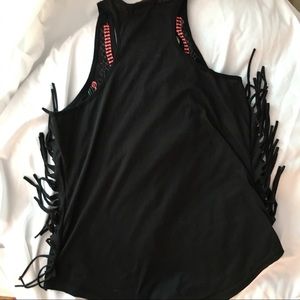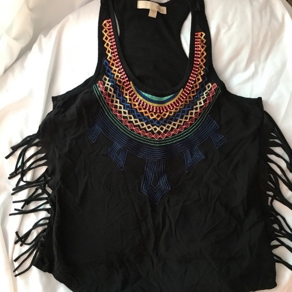 Black with fringe detail on the sides, embroidery in sequin detail on the front line. Rayon fabric excellent condition