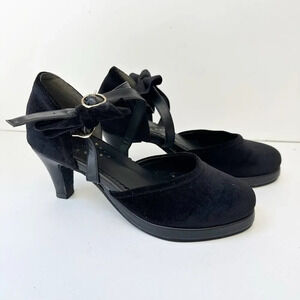 ANTAINA Lolita Black Velvet Side Bow Kitten Heels Coquette Demure