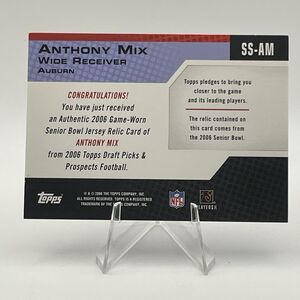 This Anthony Mix SS-AM 2006 Topps Senior Standouts Game Used Senior Bowl trading card is a must-have for any football fan. The card features a classic design with a sleek silver finish and includes a piece of game-used material from Anthony Mix's senior bowl game. The card is in excellent condition and is a rare find for collectors.