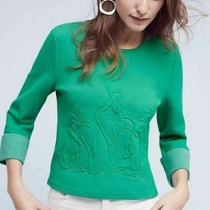 ANTHROPOLOGIE / embossed green garden pullover
