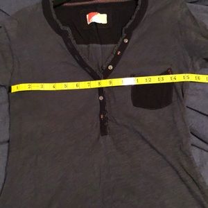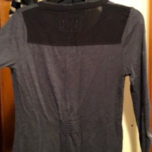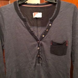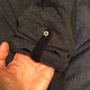 Anthro navy top high/low hem - sleeve can be cuffed up with button - worn/UC no stains/piling