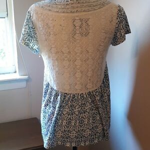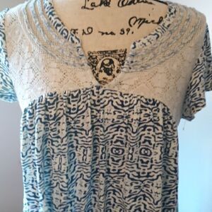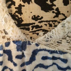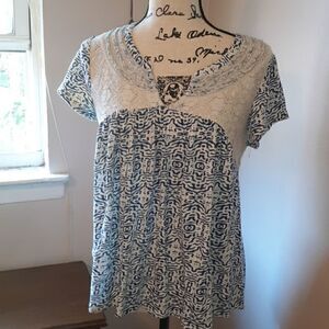 ANTHRO AKEMI & KIN BLUE & WHITE VNECK LACE TOP S