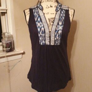 ANTHRO AKEMI & KIN NAVY BLUE BOHO SLEEVELESS TOP M