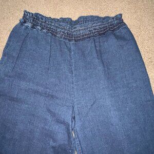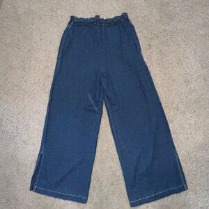 ANTHRO ANTHROPOLIE Denim Look 100% Cotton Wide Leg Slit Hem Paper Bag Waist Pant