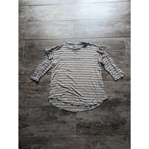 Anthropologie Dolan gray stripes 3/4 sleeves with flutter detail. Gently worn, on great condition.