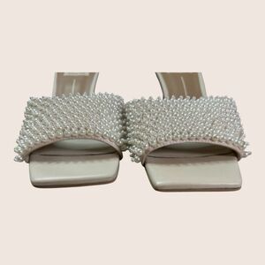 🤍 ANTHRO DOLCE VITA NANDY PEARL EMBELLISHED SLIDE MULE SANDALS HEELS SZ 6
