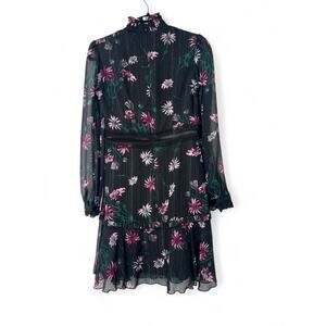 ANTHRO Donna Morgan | 2 / S | Women's Mock Neck Dark Floral Dress Lace Trim