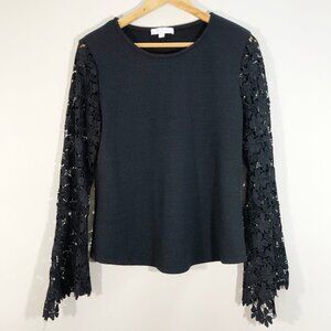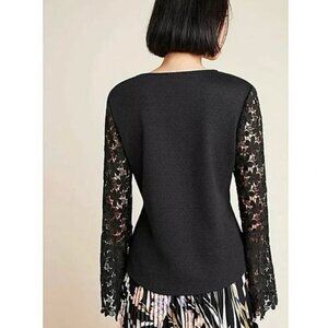 ANTHRO Eri + Ali Delilah Bell Sleeve Lace Top in Black M