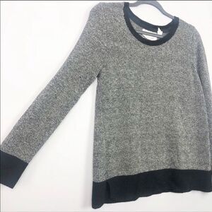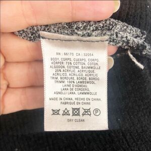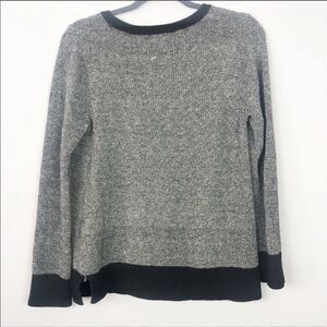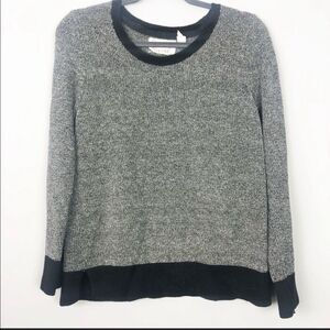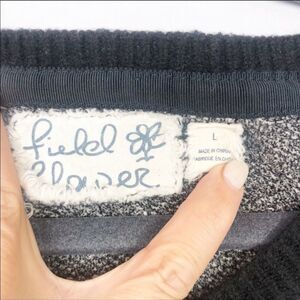Ahhh this sweater is so soft. Gray with black lambswool trim accents. Field & Flower brand sold at Anthropologie. There is a white string as shown on the back near the neck and a small hole on the back near the black trim. Otherwise good condition! Size Large.