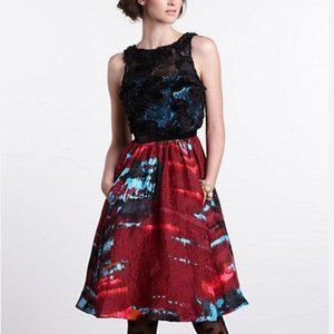 Black Rosette and Pink and Aqua Silk Skirt Dress by Tracy Reese New York for Anthropologie