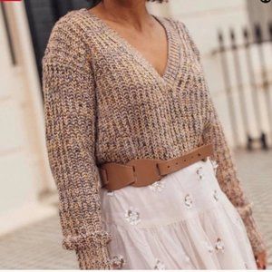 ANTHRO I Marika Space Dyed Marled V-Neck Sweater by Pilcro, S