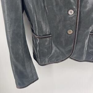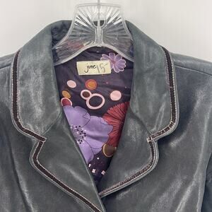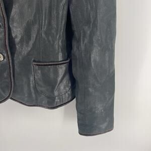 ANTHRO June buttery soft leather velvet detail button up blazer jacket sz L