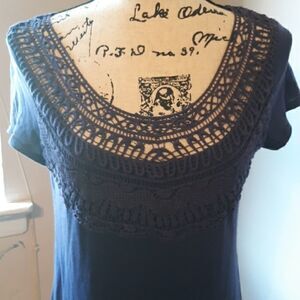 ANTHRO MEADOW RUE NAVY BLUE SHORT SLEEVE CROCHET DETAIL SCOOPNECK TOP X-SMALL