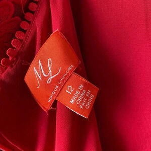 ANTHRO’ MONIQUE LHUILLIER | Red Floral Appliqué Tiered Lace Bella Dress Size 12