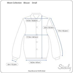 ANTHRO MOON COLLECTION Navy Silk Ruffle Blouse Sm