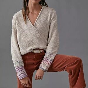 ANTHRO Pilcro Drew Surplice Sweater Faux Wrap Fair Isle Boho Cabincore