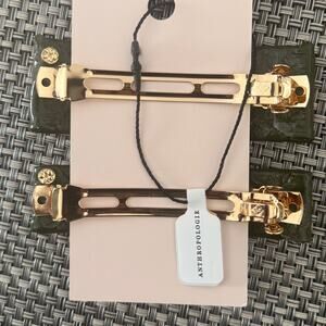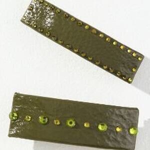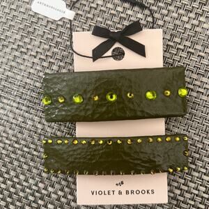 ANTHRO VIOLET & BROOKS NWT Paige Leather Barrettes Crystals Set/2 Olive Green