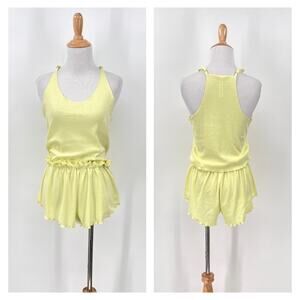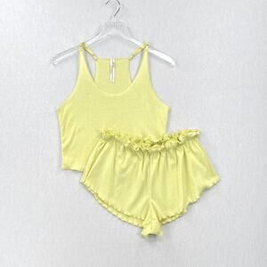 ANTHROPOLOGIE 2 Piece Sleep Set Womens Small Green Yellow Pajama Cami Shorts