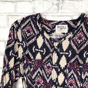 Super cute and boho chic Mira Dress by Holding Horses for Anthropologie. Aztec print. Button front, chest pockets, elasticized waist. 3/4 sleeves. Does not come with the belt the model is wearing it with. Great preowned condition. Retails $128. Size is 0.