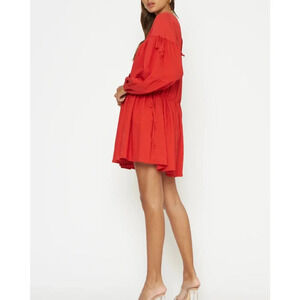 ANTHROPOLOGIE 4S13NNA Marina Dress Red Boho Tiered Long sleeve Size Small