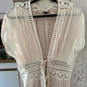 ANTHROPOLOGIE AAKAA LACE TRIM TIE FRONT DUSTER