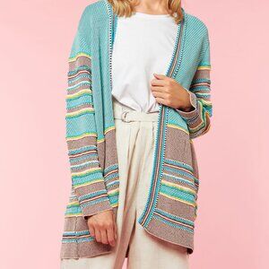 Striped in cheerful hues, this cozy cardigan is the perfect layer to transition you into warmer months.