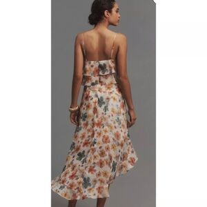 ANTHROPOLOGIE ASYMMETRICAL HEM FLORAL WATER COLOR SPAGHETTI STRAP DRESS XS