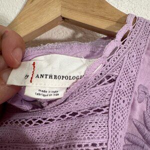 ANTHROPOLOGIE Aderyn Puff-Sleeved Lace Blouse Lavender Purple Cottagecore Small