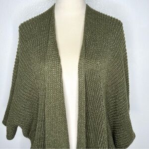 Chunky oversized fit with an open front and dolman sleeves. Some subtle metallic threading throughout. So cozy! Excellent pre-owned condition, no flaws.