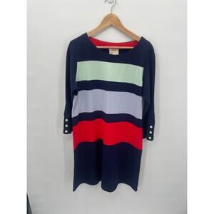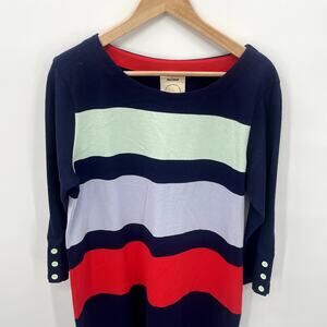 ANTHROPOLOGIE Allihop Colorblock Mod Stripe Cotton Shift Dress // L