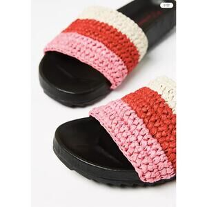 ANTHROPOLOGIE Amira Red Stripe Woven Slide Sandals // 7