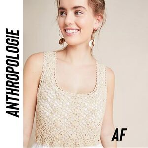 ANTHROPOLOGIE BECKET CROCHET EYELET DRESS NEW NWT SIZE 1 X TAN WHITE