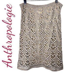 ANTHROPOLOGIE BETH BOWLEY Open Knit Nude Crochet Pencil Skirt, Size Medium.