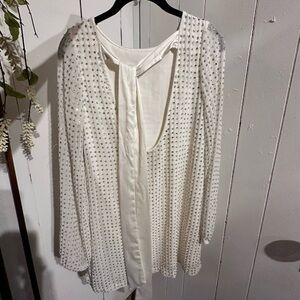 This elegant white top features stunning embellishments, perfect for adding a touch of glamour to any outfit. Ideal for both casual and formal occasions.
