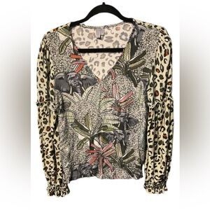 ANTHROPOLOGIE | BL-NK Sibley Elephant Jungle Print Top sz XS