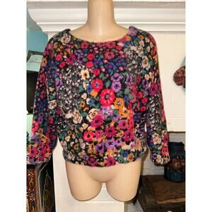 ANTHROPOLOGIE BOUQUET EYELASH SWEATER - FUZZY FALL FLORAL! S