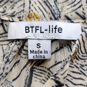 BTFL-LIFE ANTHROPOLOGIE Metallic Gold Botanical Print Keyhole Neckline Blouse Top
