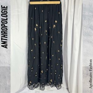 ANTHROPOLOGIE BY CABALLERO PRINTED MAXI SKIRT IN BLACK MOTIF XS NWT