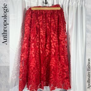 ANTHROPOLOGIE BY SUNDAY IN BROOKLYN DIMENSIONAL LEAF MAXI SKIRT IN RED SIZE 8
