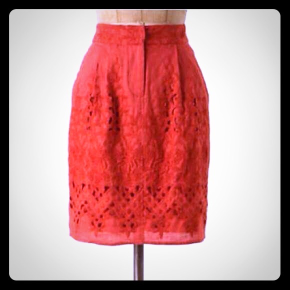 Lovely skirt, fulky lined, brick colored, back and front pockets, worn only once, excellent condition. 100% linen, waist: 15in flat, lenght: 20in.