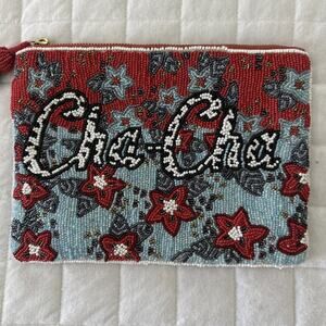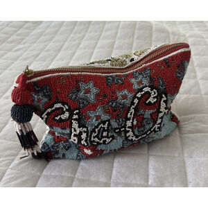 ANTHROPOLOGIE Beaded Clutch Womens Cha Cha Tasseled Zippered Bohemian Retro Bag