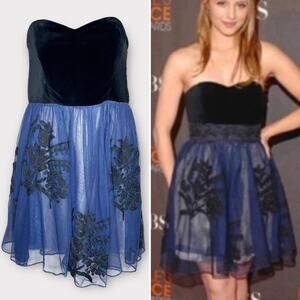 ANTHROPOLOGIE Belle of the Ball Floreat Velvet & Tulle with embroidery detail black & navy strapless party cocktail dress Size 6
