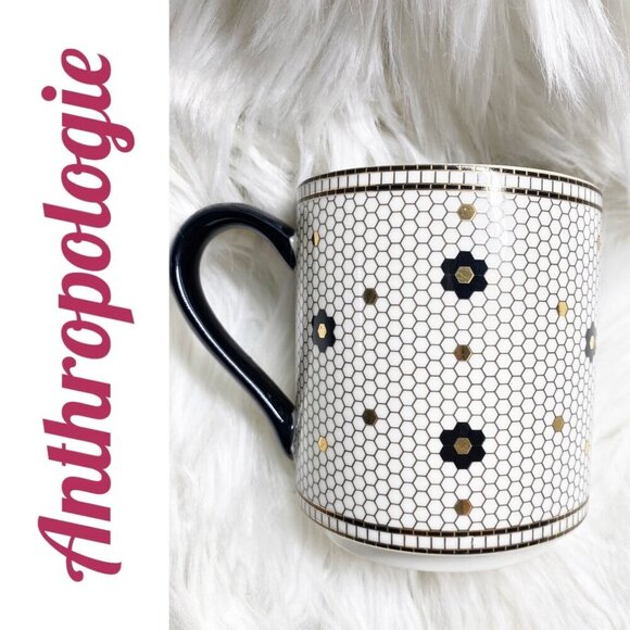 ANTHROPOLOGIE Bistro Tile Margo Ceramic Mug Coffee Tea With Monogram V Initial