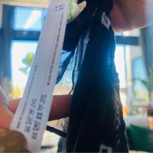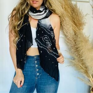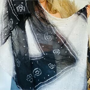 ANTHROPOLOGIE Black White Geometric Print Sequin Beaded Oversize Scarf Wrap