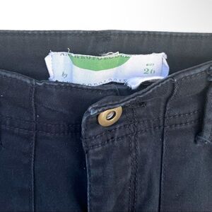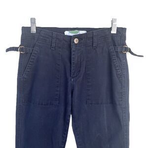 98% cotton black buckle skinny chino pants by Anthropologie! I’m very very good preowned condition, are not brand new but no stains or tears. Charcoal black with detail stitching over legs, large front pockets, side buckle details, and two back pockets. Size 26, runs a bit small.