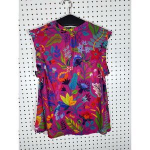 ANTHROPOLOGIE Blank London Vibrant Pink Smocked Floral Tank Top Size L