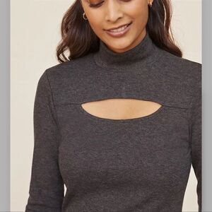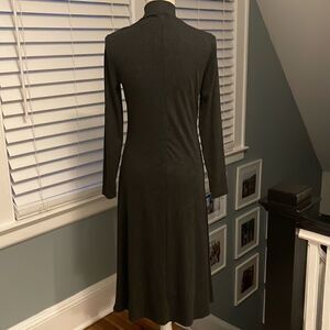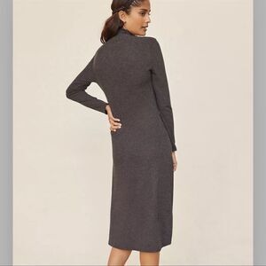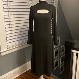 ANTHROPOLOGIE - Bordeaux Cut Out Ribbed Turtleneck Gray Midi Dress.