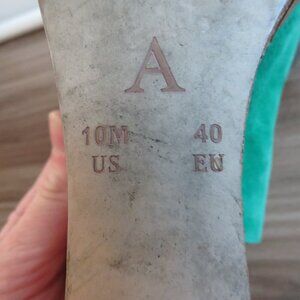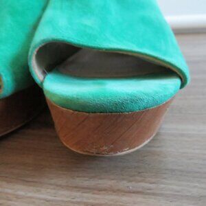 ANTHROPOLOGIE Bow Back Wooden Wedge Peeptoe Sandals in Kelly Green - Size US 10